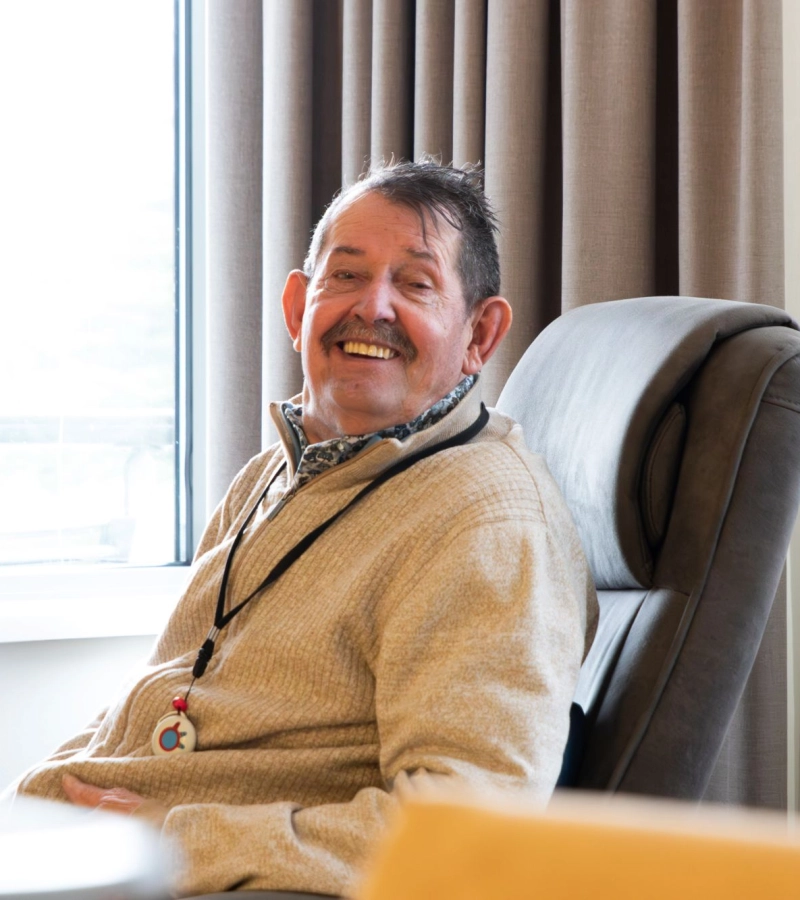 Cor Spee zit tevreden en met een grote glimlach op de bank, in zijn appartement in Nieuw Rijsenburgh in Sommelsdijk. De deur staat wagenwijd open. Als iemand voorbijloopt over de gang, zwaait hij vriendelijk. Dat hartelijke karakter blijkt ook uit zijn grote voorraad met koekjes, snoep en bonbons – die netjes in een mandje op zijn eettafel opgeborgen zijn. “Voor het zorgpersoneel”, licht hij kort toe. “Ik ben zo blij met de zorg die ik hier krijg. Alle zorgprofessionals staan altijd voor me klaar. Bijvoorbeeld om me uit bed te helpen, te wassen, aan te kleden, mijn medicatie in orde te maken, me naar het restaurant te brengen of het eten op mijn kamer te brengen. Ik krijg hier heel fijne, persoonlijke zorg. En als zij vermoeden dat het even iets minder goed gaat met mijn gezondheid, dan letten ze nóg iets beter op me. Dat waardeer ik enorm. Ik vind het hier fantastisch.”